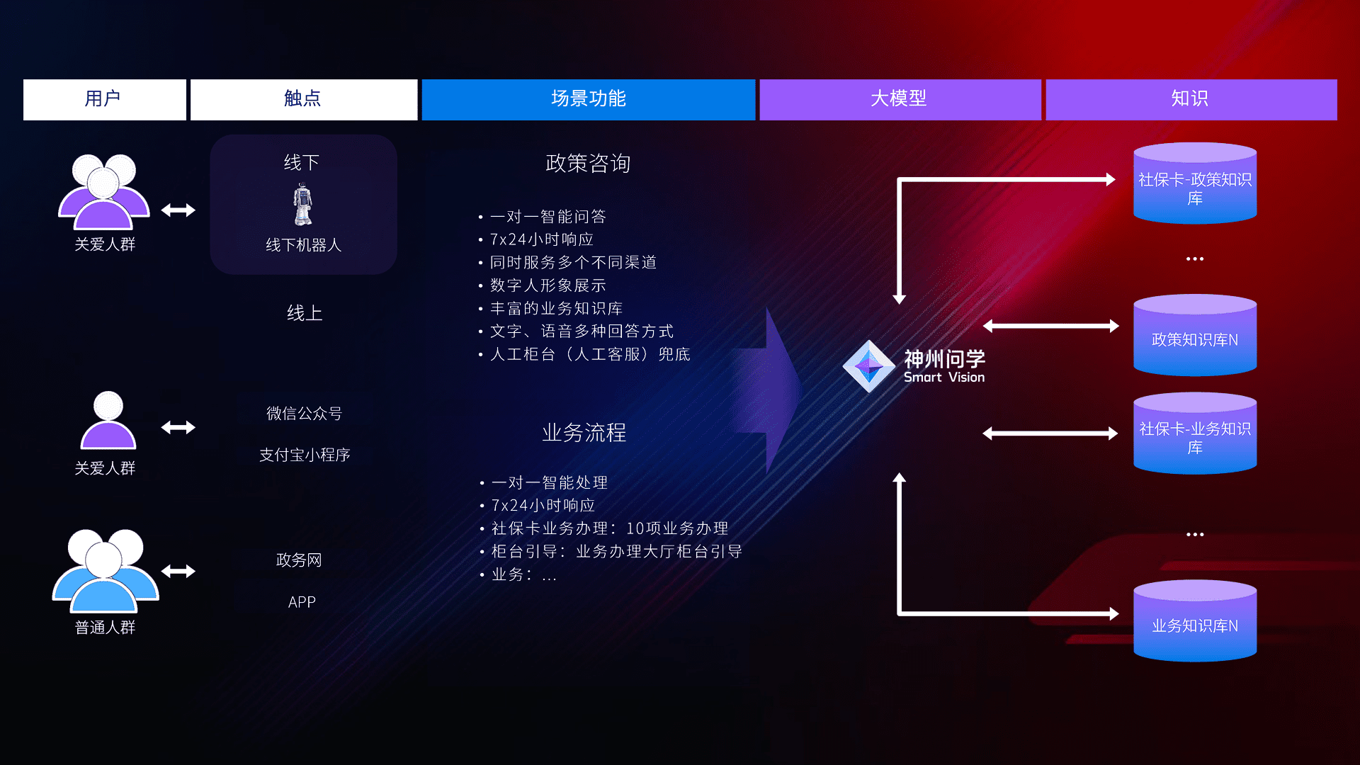 • 线上线下全覆盖:线上提供微信公众号、、、支付宝小程序、、、政务网、、、、app多种渠道,,,与线下机器人形成完整服务体系。。。
